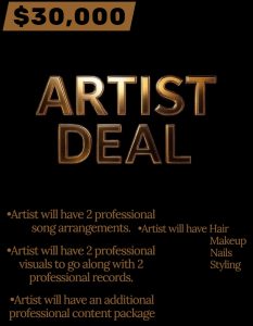 Comfort deal will get you two songs of professional quality and arrangement. They will both come with videos to suggest a branded look that suggest the caliber of professionalism superseding what you didn’t know wasn’t your greatest. We put together the vision you pay us to see and know you couldn’t get anywhere but where we would create it would .